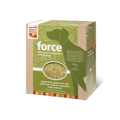 Great Food!, January 23, 2012 By This review is from: Honest Kitchen Force, Grain-Free Dehydrated Raw Dog Food w/ Chicken, 10lb (Misc.) Although our dog was already on a healthy diet (lots of fresh meats, eggs, etc) this food has noticeably made further changes. Our dog, who is 11 yrs. old is more vibrant. He is sleek and shiny, full of energy and life. For 11, he is still very much like a puppy......full of play. It is not that he wasn't before, but I'm confident that this food has really contributed to more vibrant health. On top of that, he just loves the stuff! Thanks Honest Kitchen. So glad we have some healthy food choices for our furry friends.