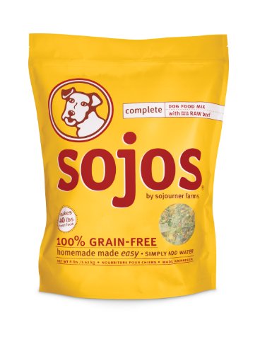 Our dog loves this feed, January 24, 2012 By Amazon Verified Purchase This review is from: Sojos Complete Beef Dog Food Mix (2 lb) (Misc.) Our lives are ruled by ten pounds of chihuahua - do not be mistaken, they are demanding little bundles of teeth and tail that make life miserable if they don't like something. Our gutsy little monster loves this feed, and will actually sing to get it. Made from good quality ingredients having NO grain at all - just Raw, Freeze-Dried beef in addition to a blend of high-quality fruits and veggies - which is what dogs of any breed were designed to eat. We are pretty fussy about any food, so research everything we and the dog eat; Sojos is what the dog likes and it is good for him. Just soak it overnight, for a delicious meal that needs nothing else.