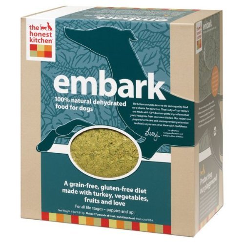 The Best Stuff., January 23, 2012 By dogfish "shimmertwist" (oregon) - See all my reviews Amazon Verified Purchase This review is from: Honest Kitchen Embark, Low Carb Grain-Free Dehydrated Raw Dog Food w/ Turkey, 4lb (Misc.) I cannot say enough about The Honest Kitchen. I have used all of their dog food products and a lot of their treat line and would, and do, highly recommend them to anyone who asks me what I'm feeding my dogs.