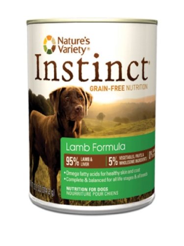 Loves it and healthy, November 12, 2011 Amazon Verified Purchase This review is from: Instinct Grain-Free Lamb Formula Canned Dog Food by Nature's Variety, 13.2-Ounce Cans (Pack of 12) (Grocery) Not much more to really say about it but that it's a wonderful value, healthy, and my dog loves it.